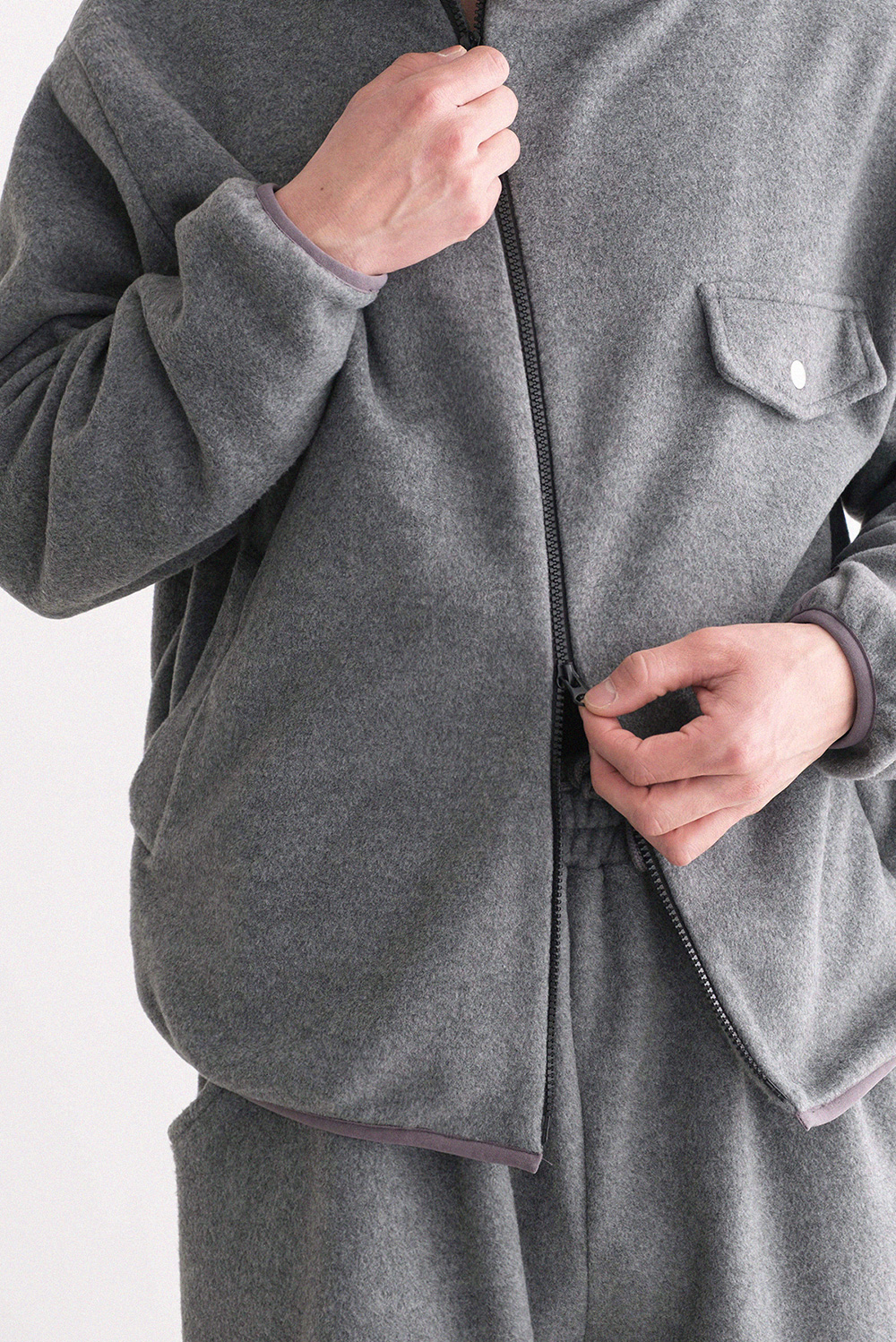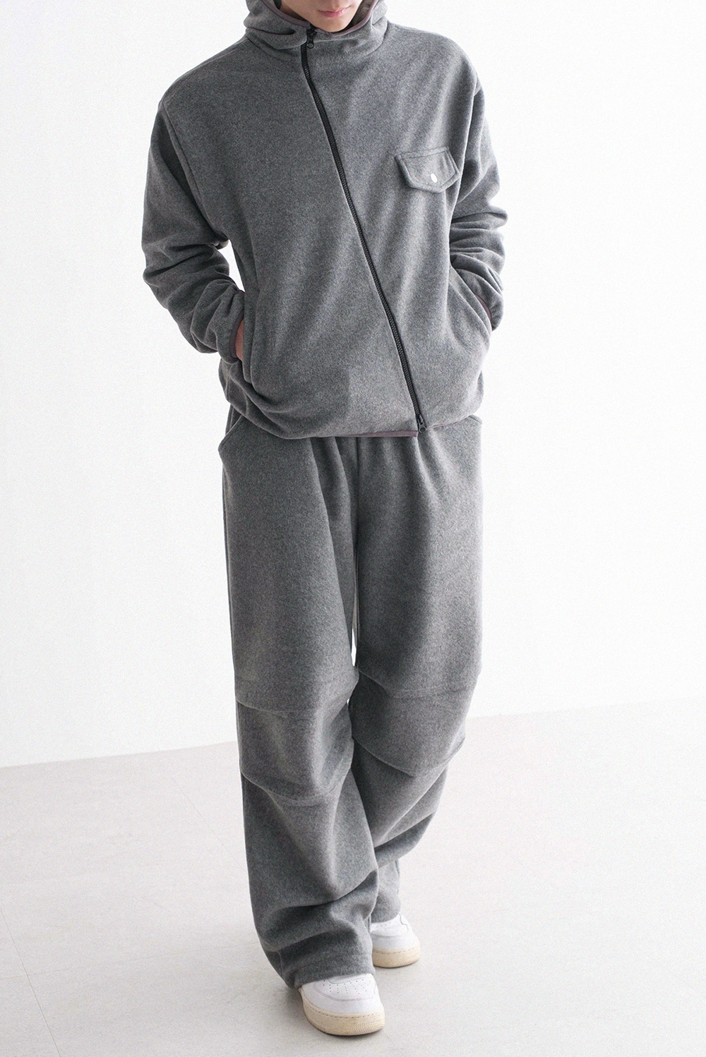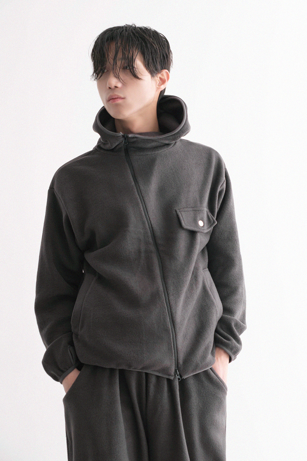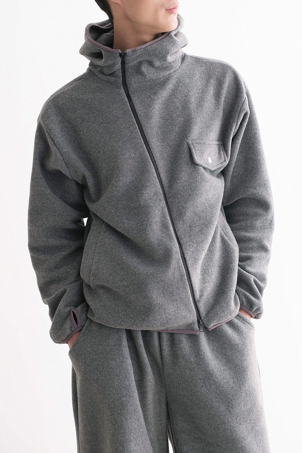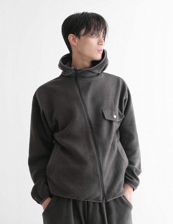oblique line fleece zip Fleece Jacket 30879