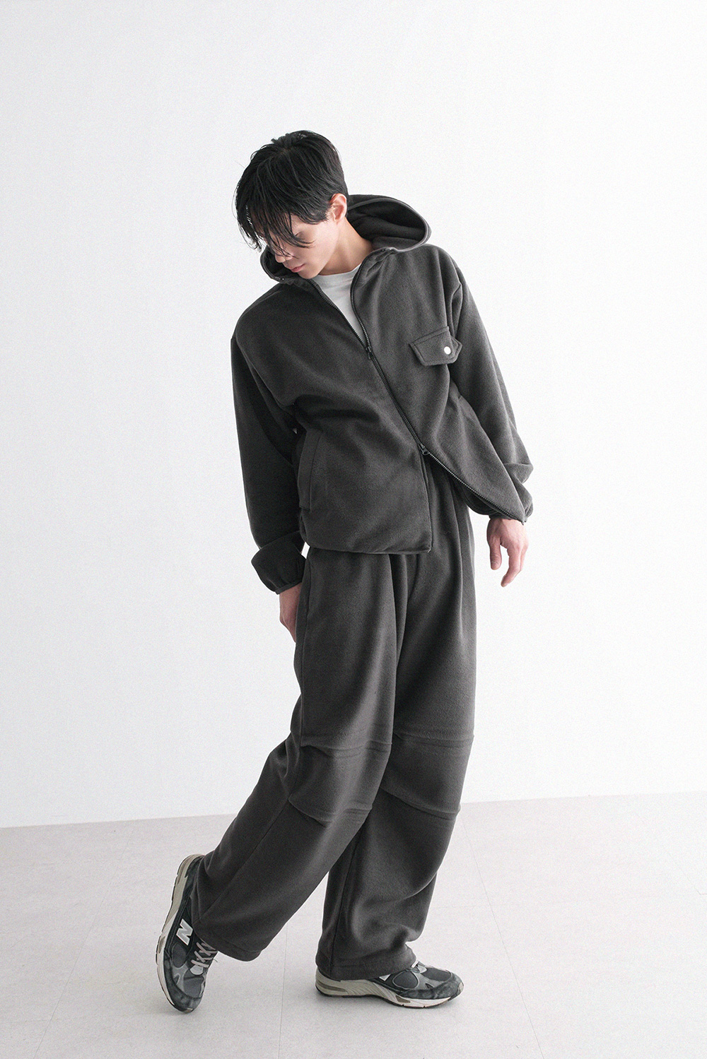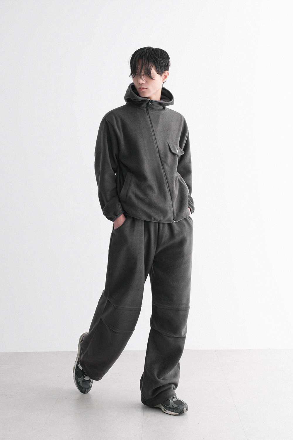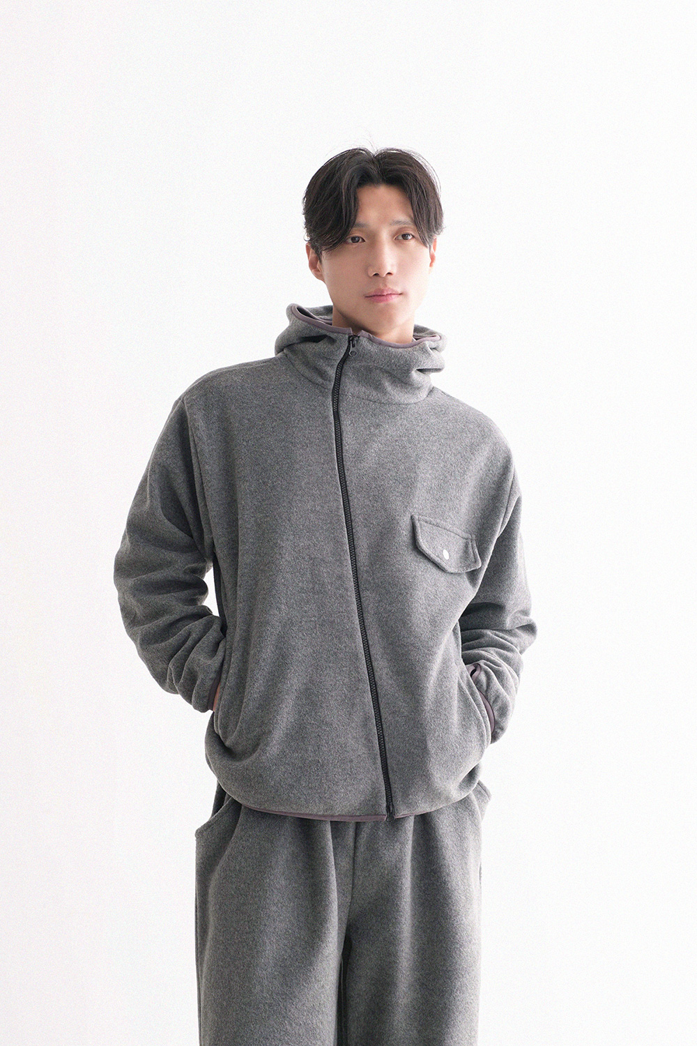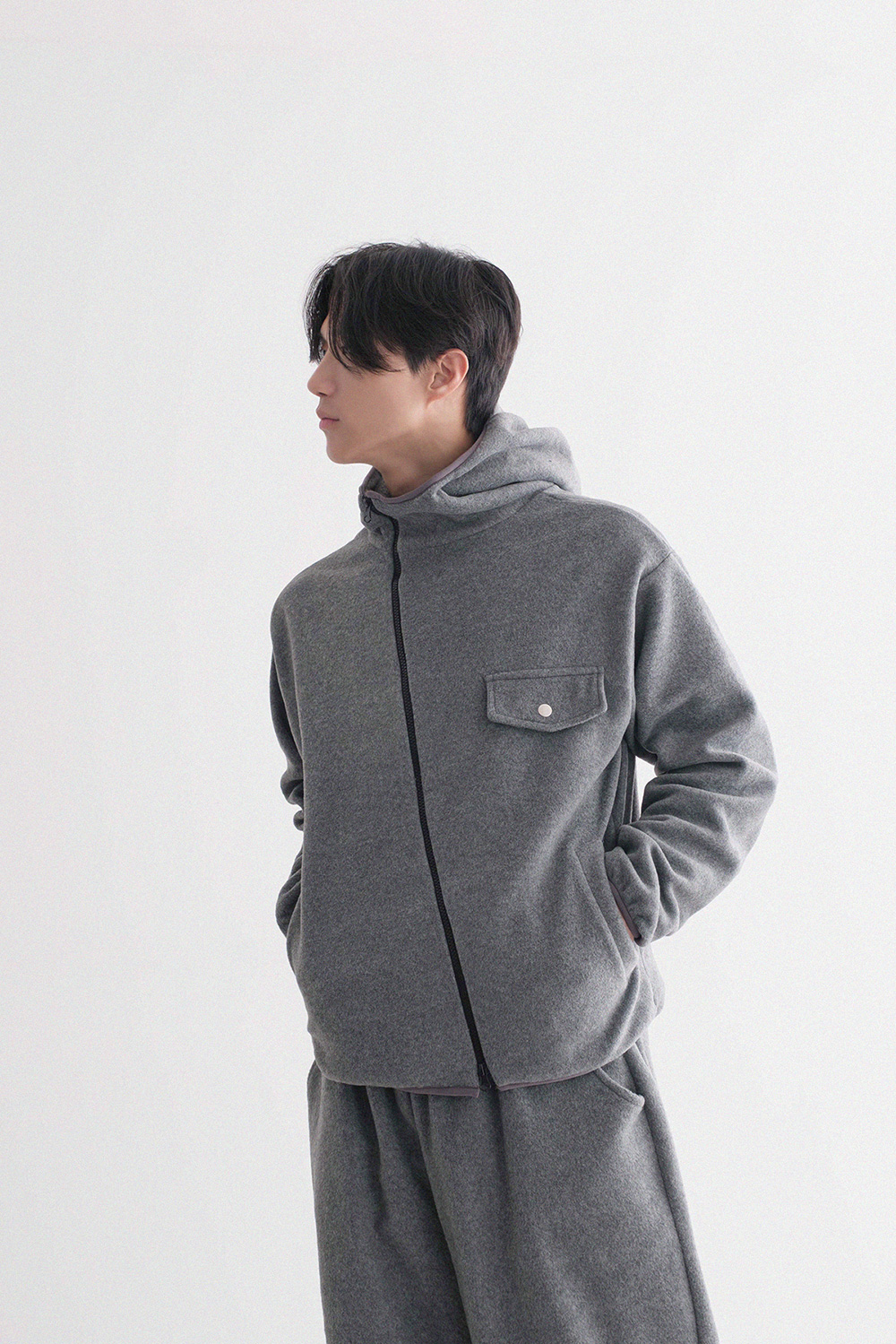 oblique line fleece zip Fleece Jacket 30879