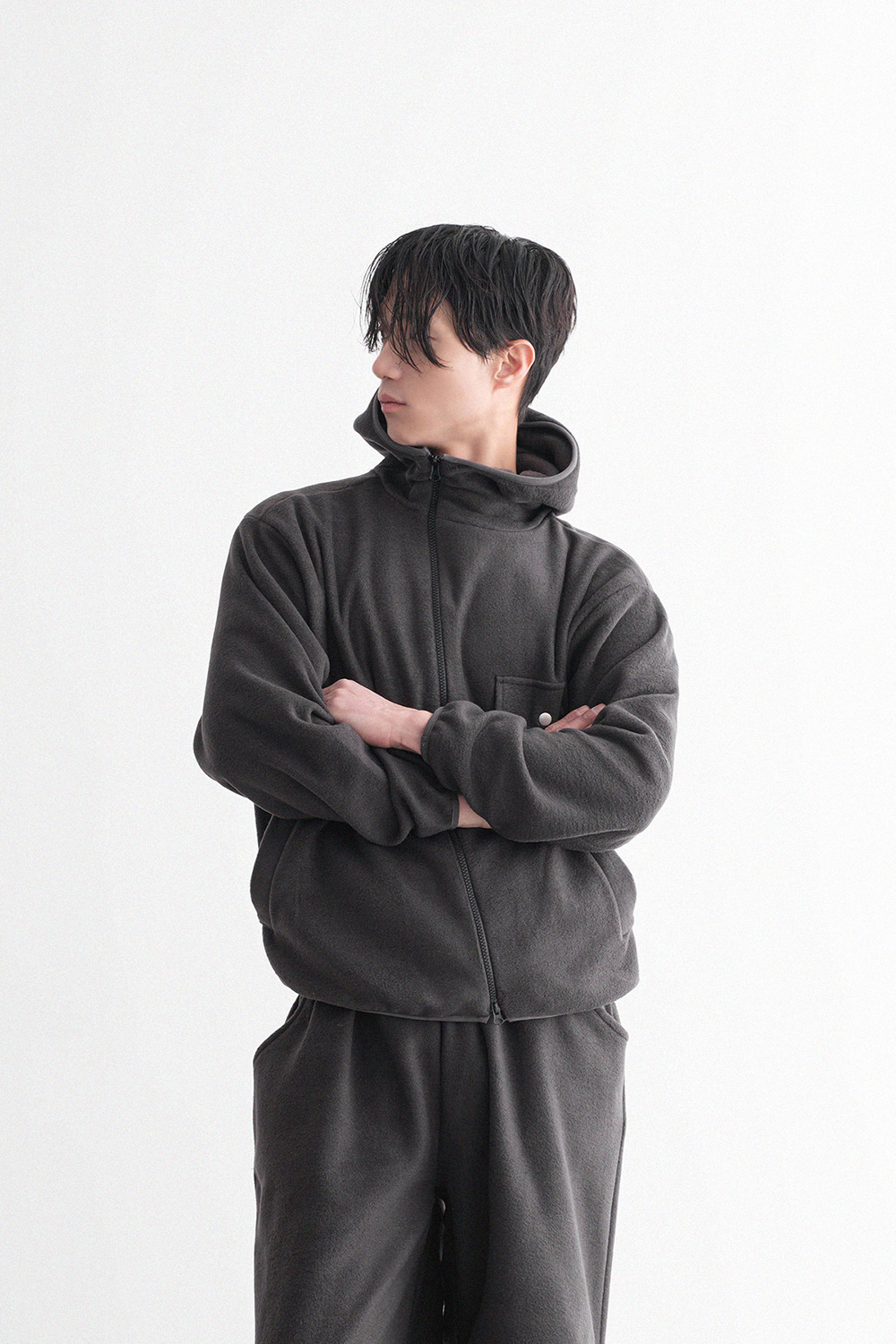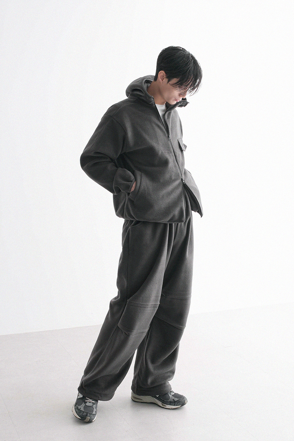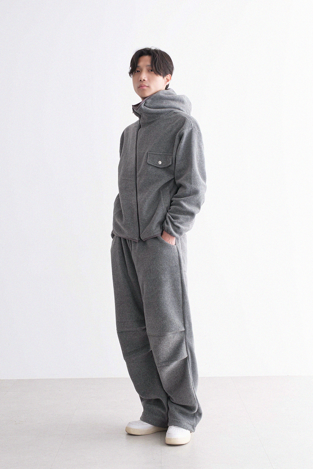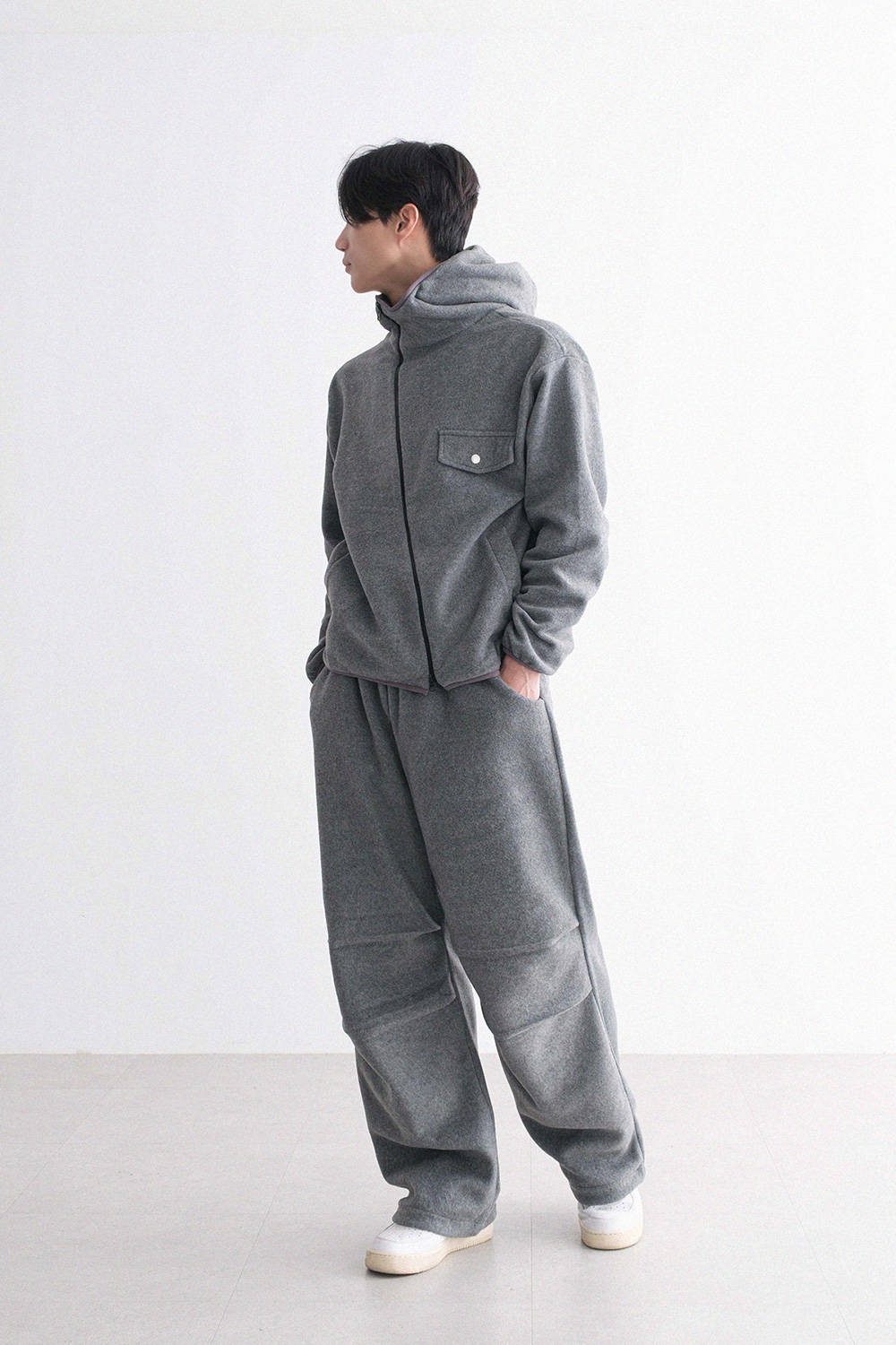 oblique line fleece zip Fleece Jacket 30879