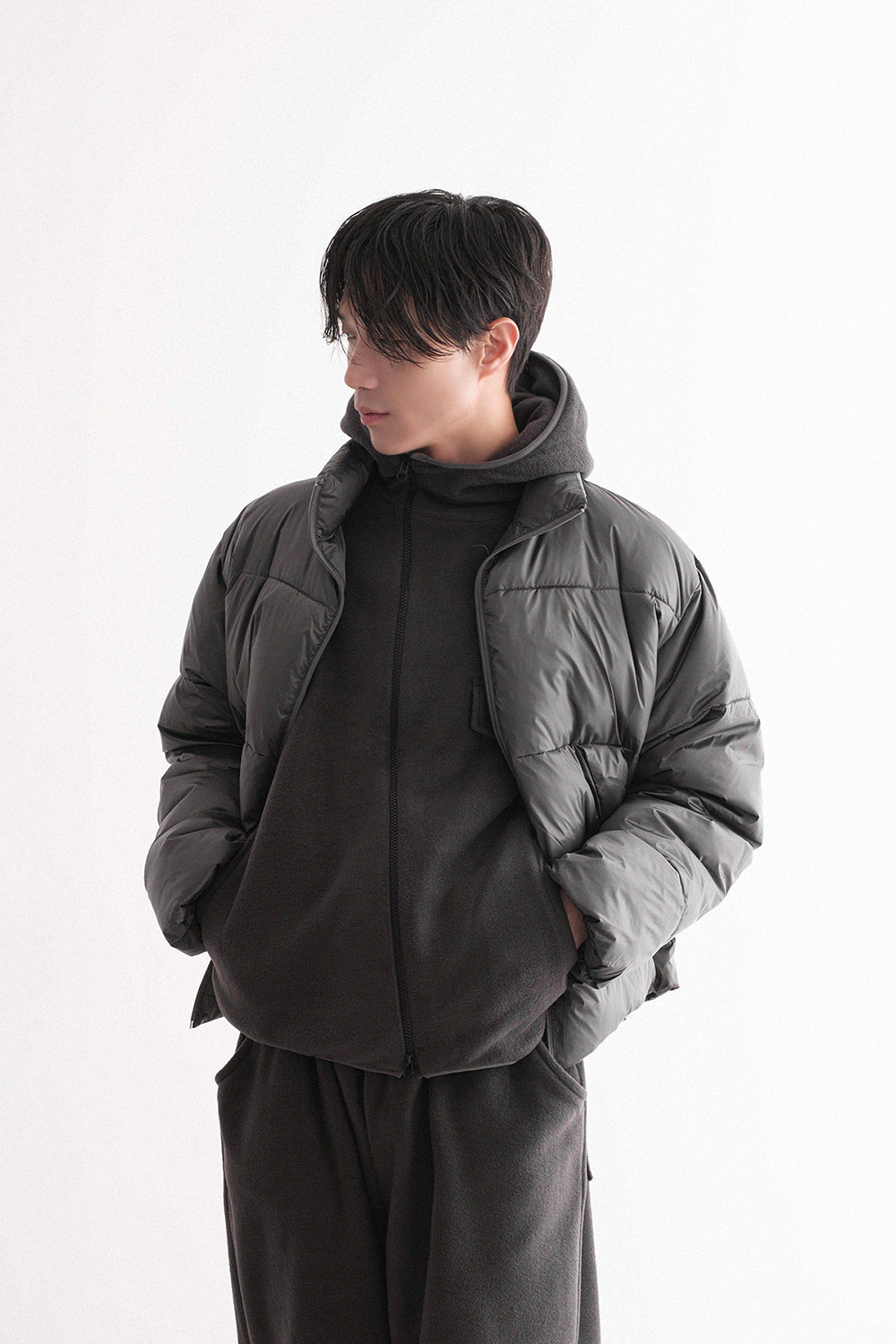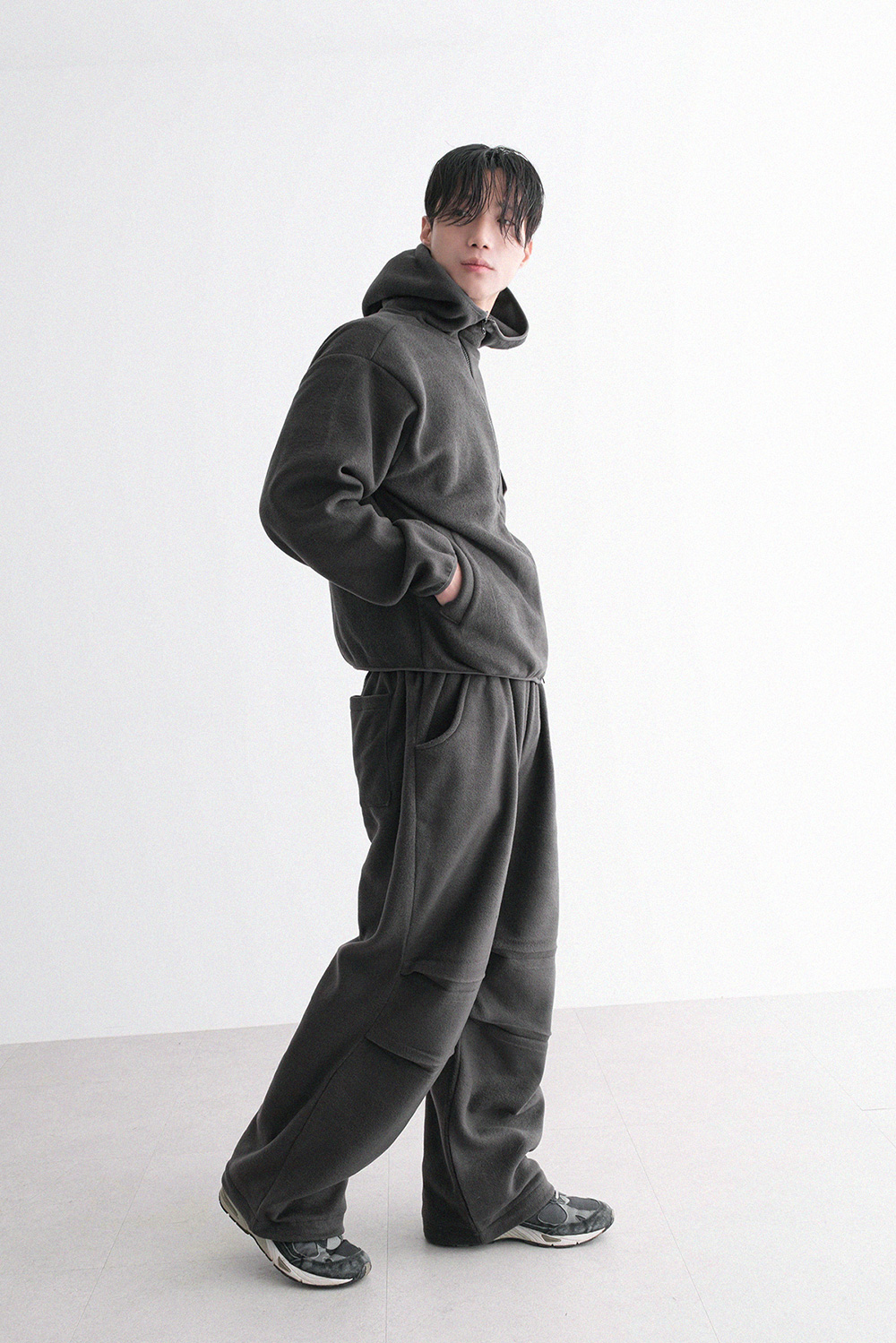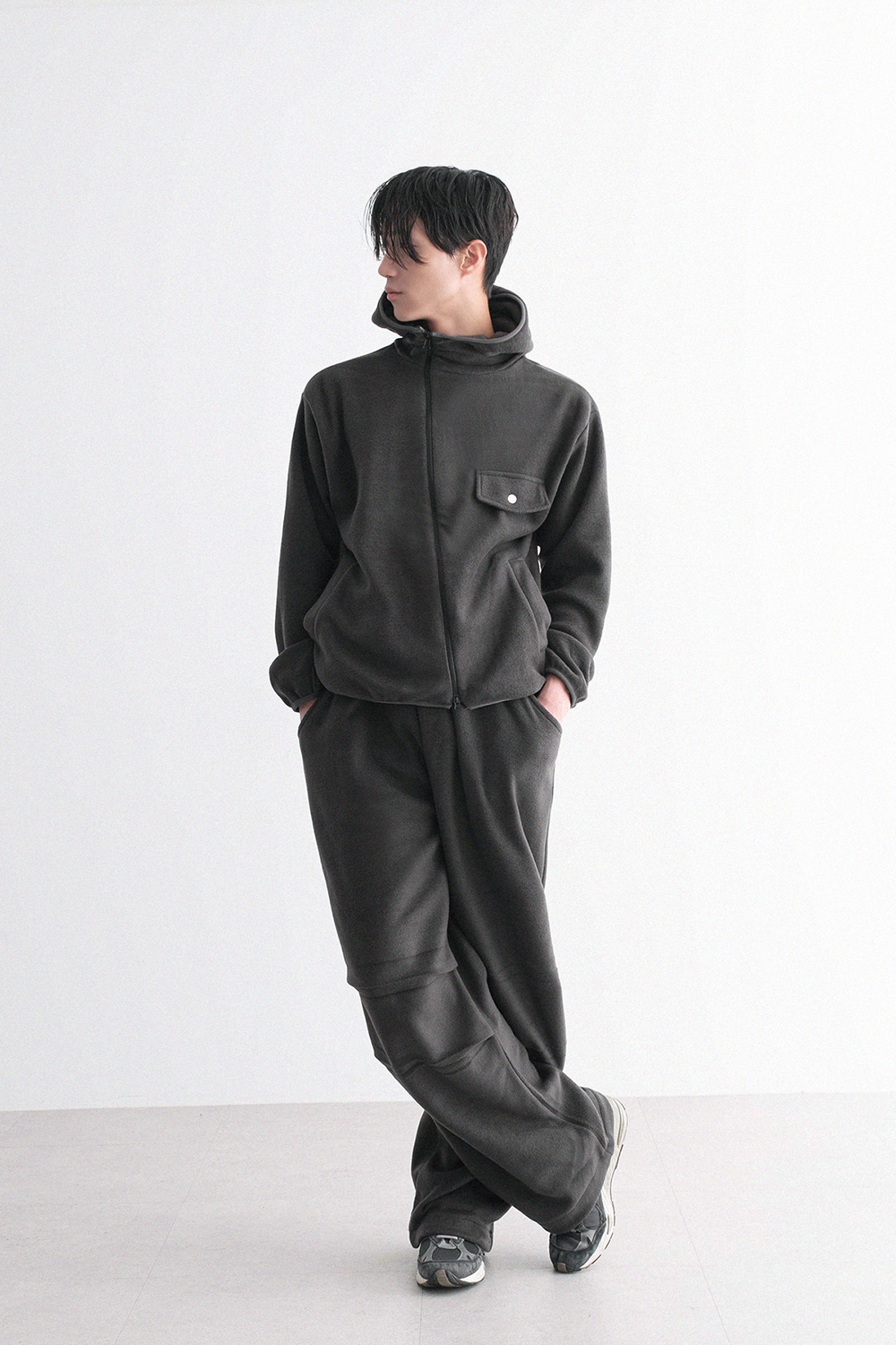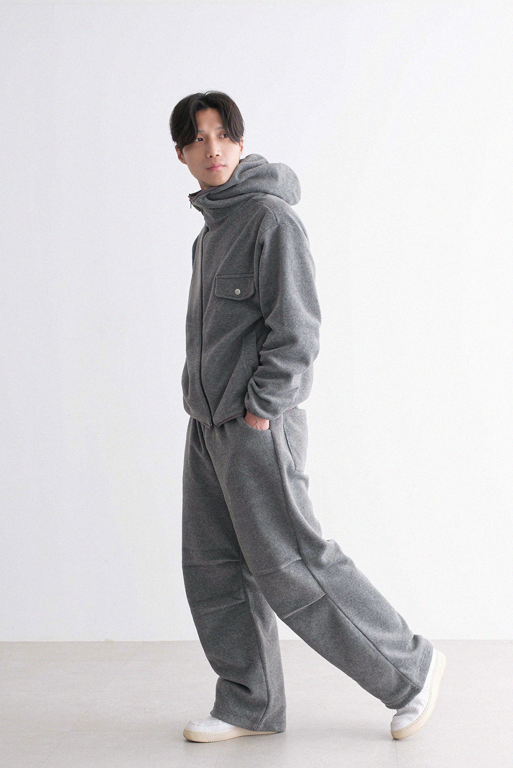 oblique line fleece zip Fleece Jacket 30879
