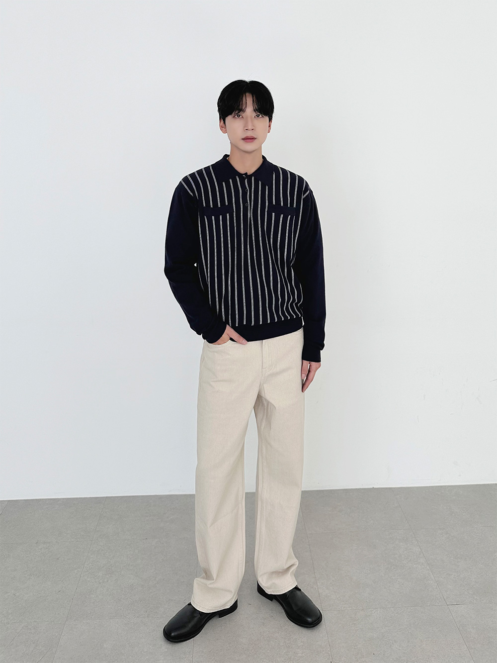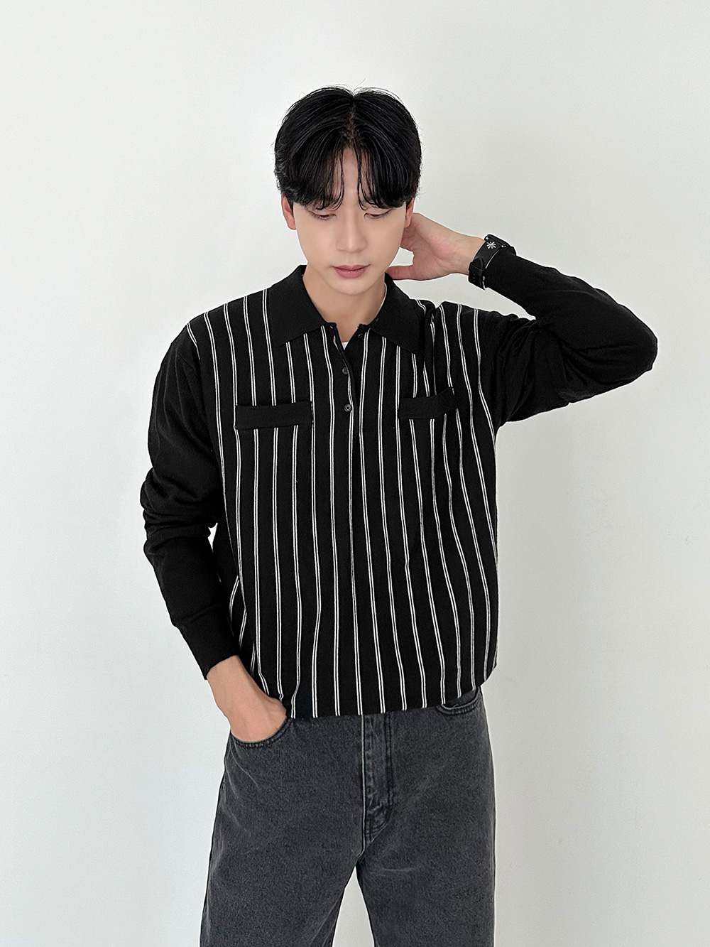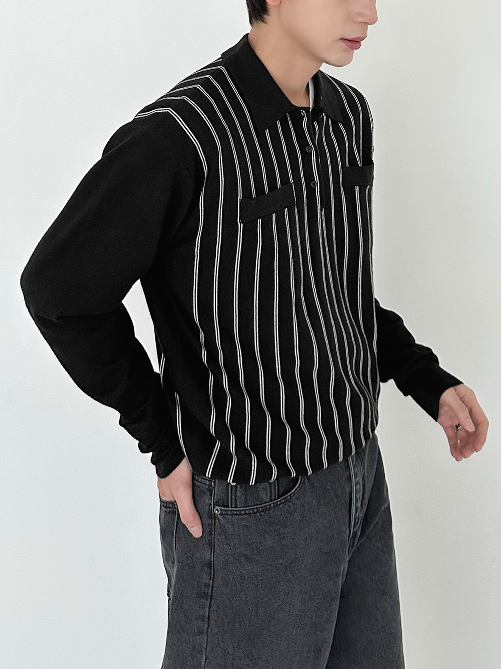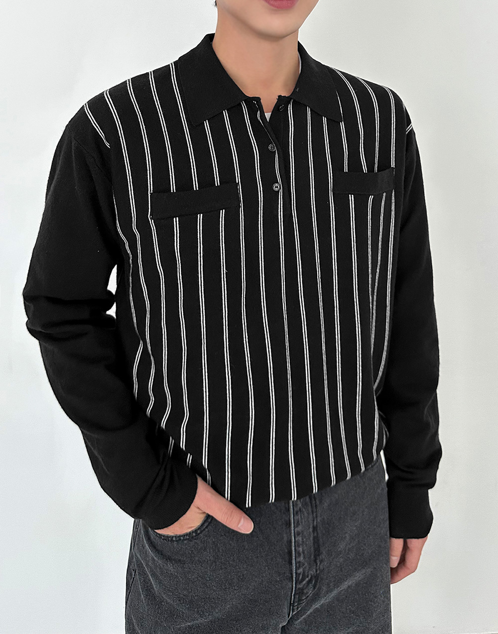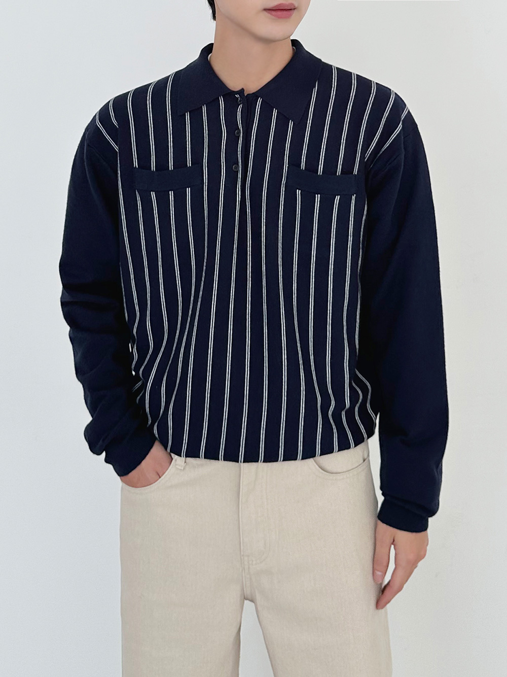 praist stripe collar Knit 31016