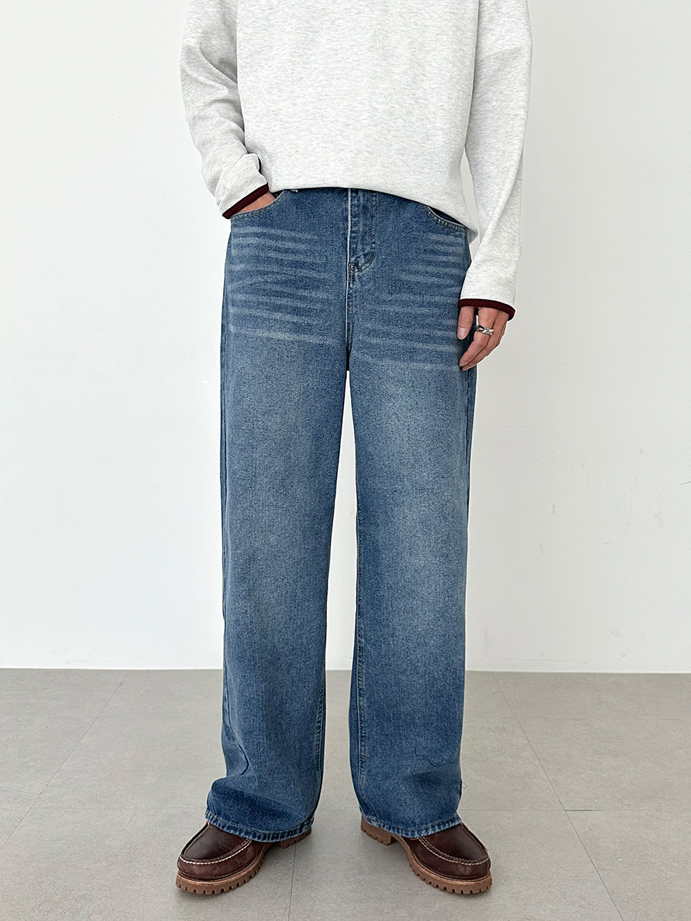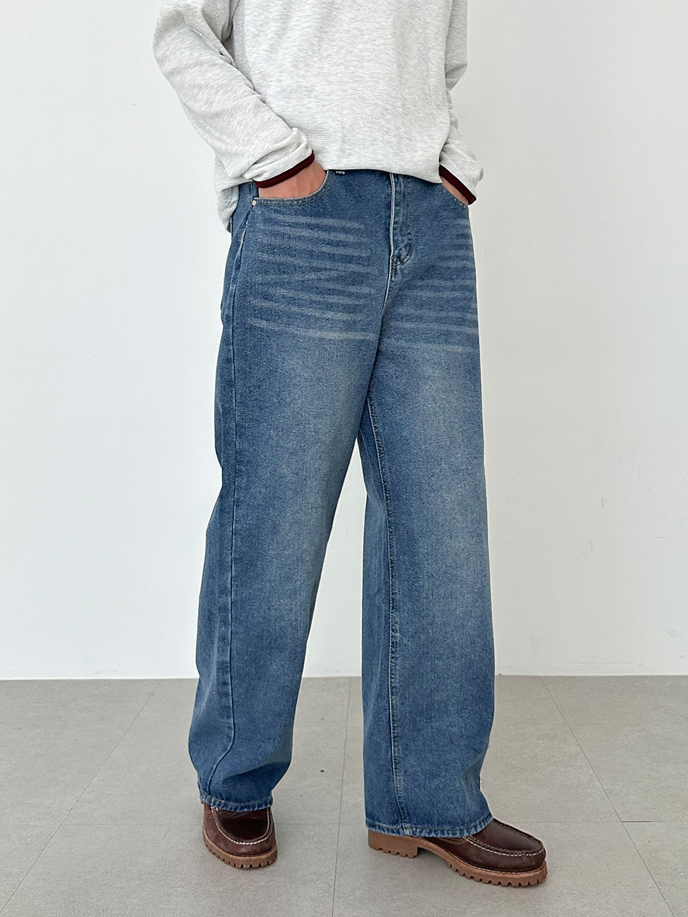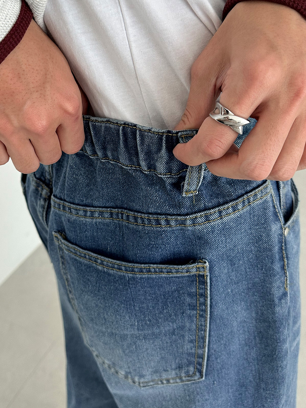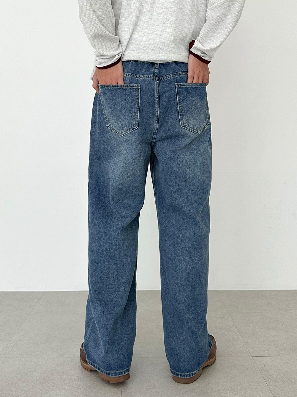 hidden banding wide Denim pants 31093