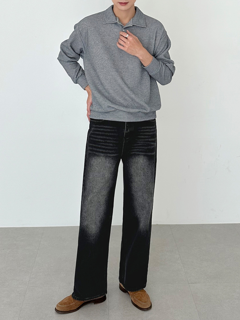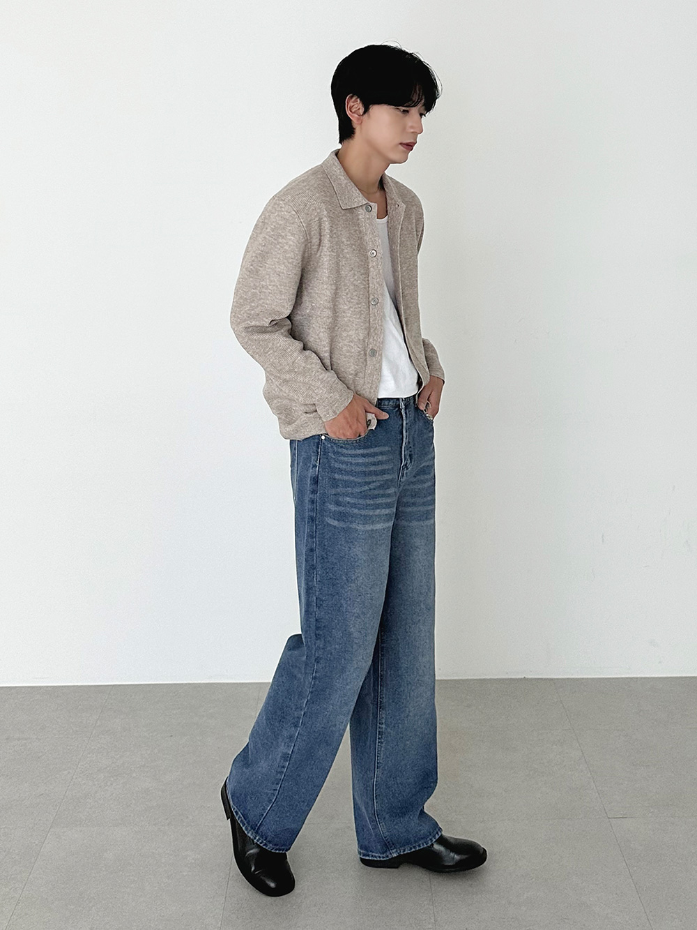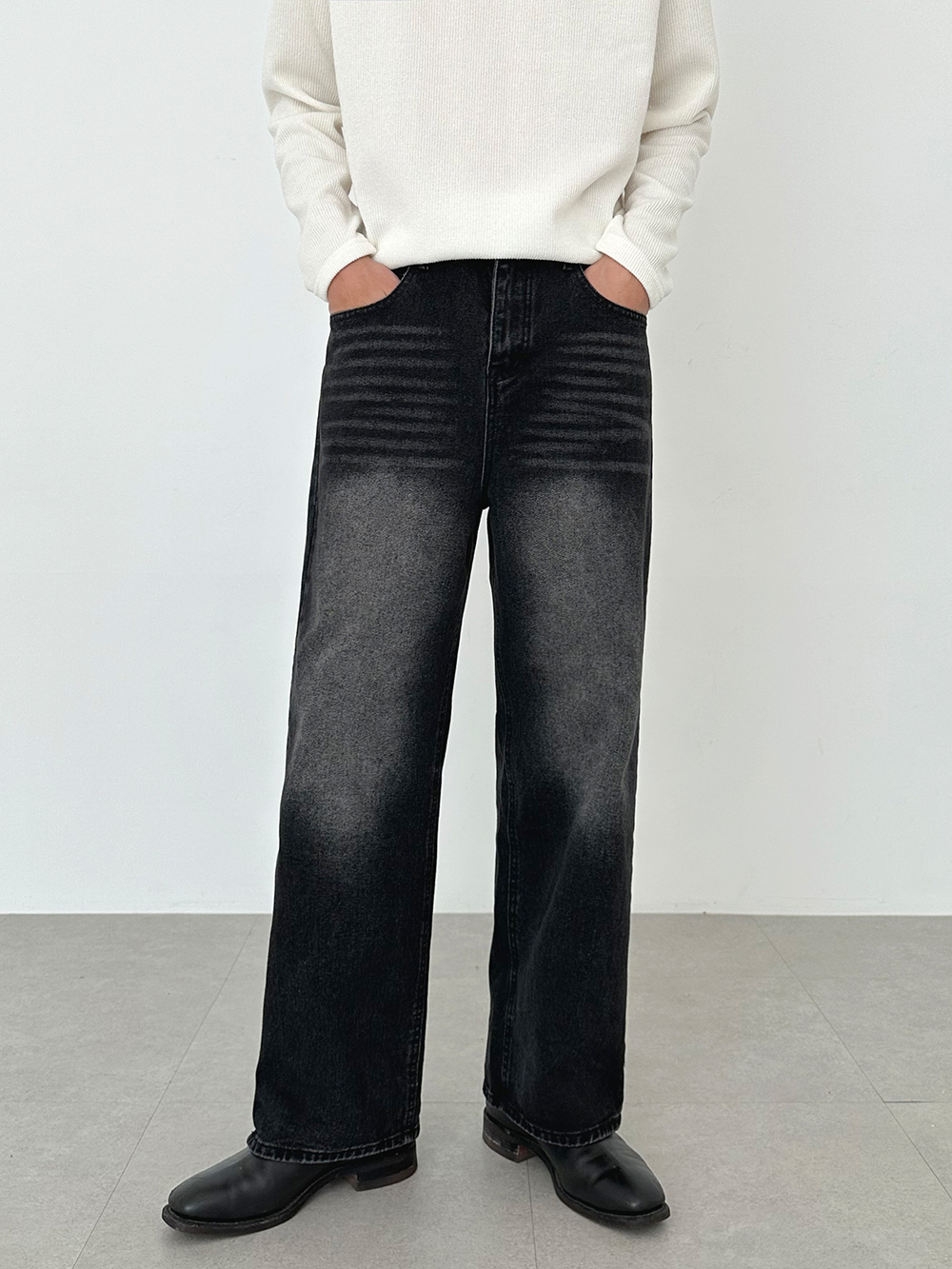 hidden banding wide Denim pants 31093