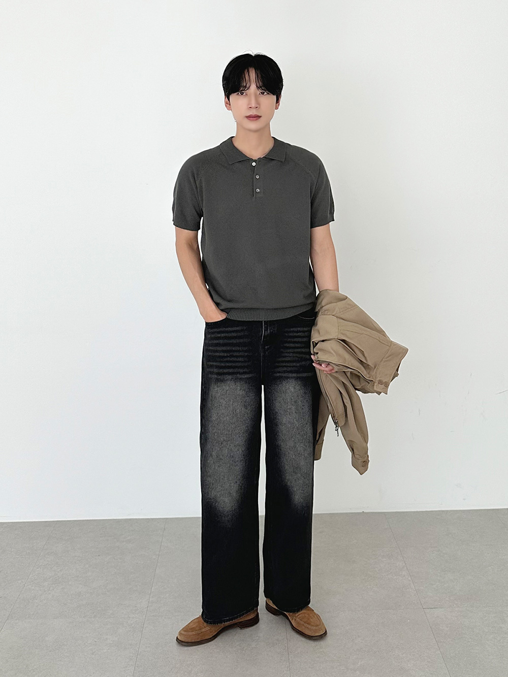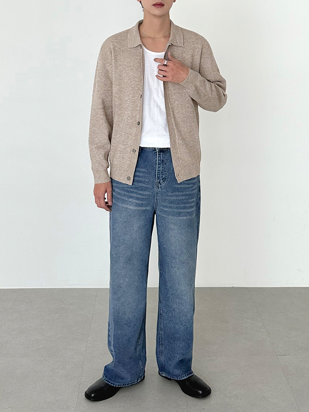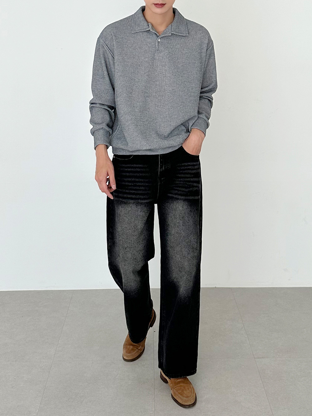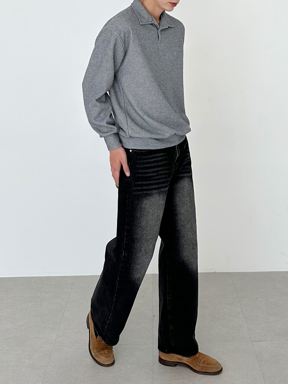 hidden banding wide Denim pants 31093