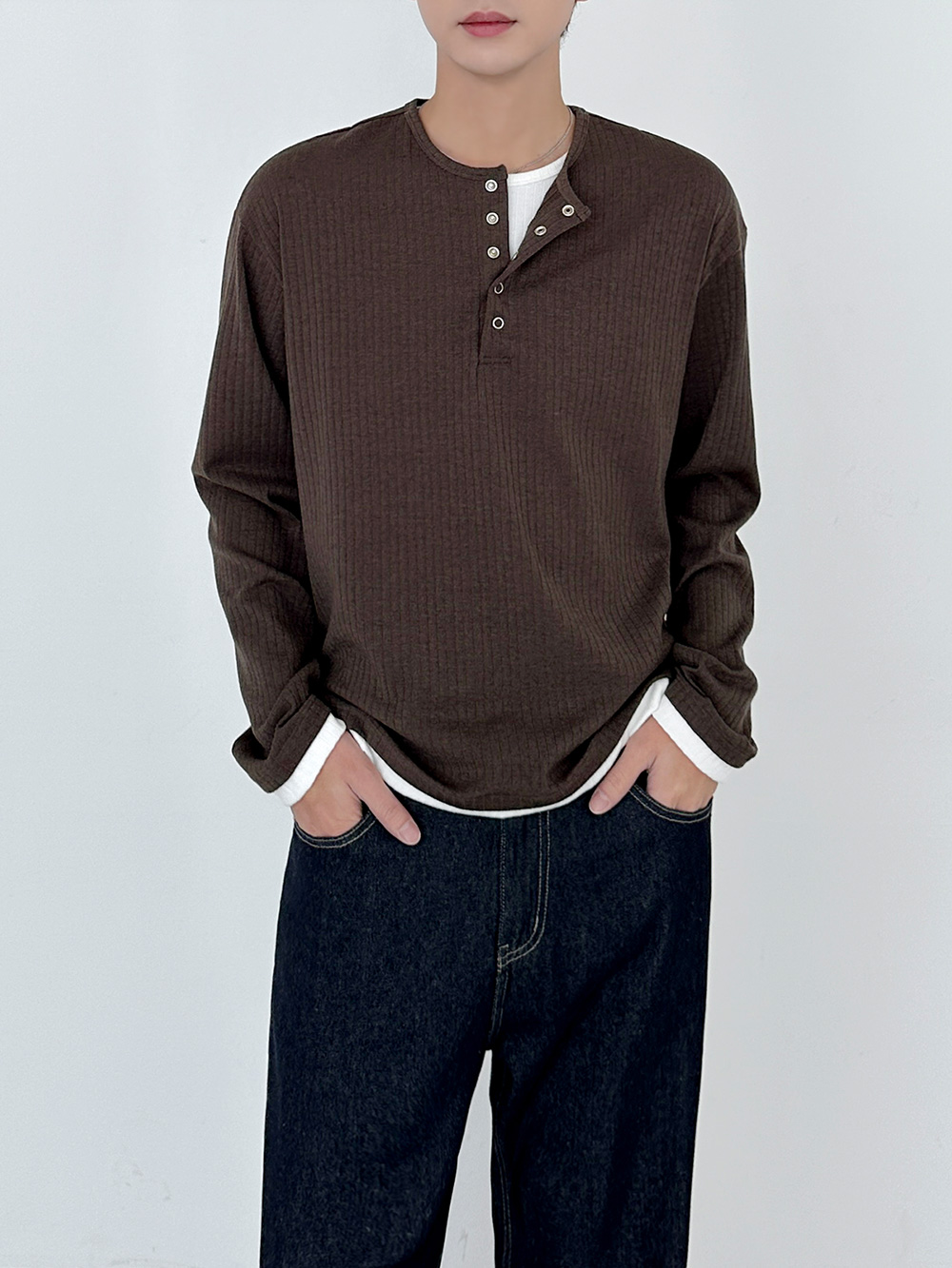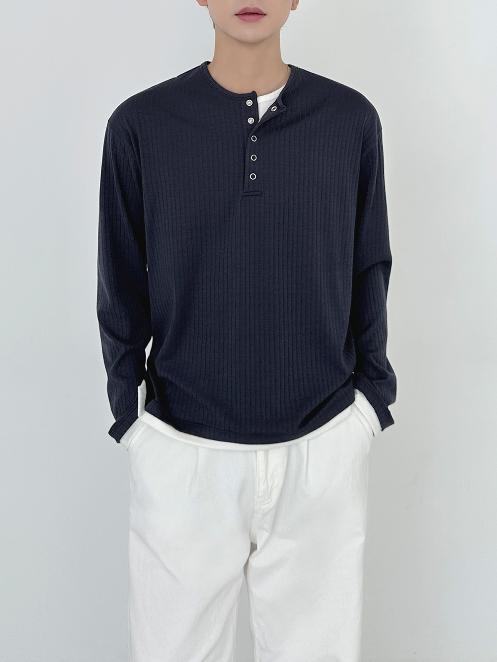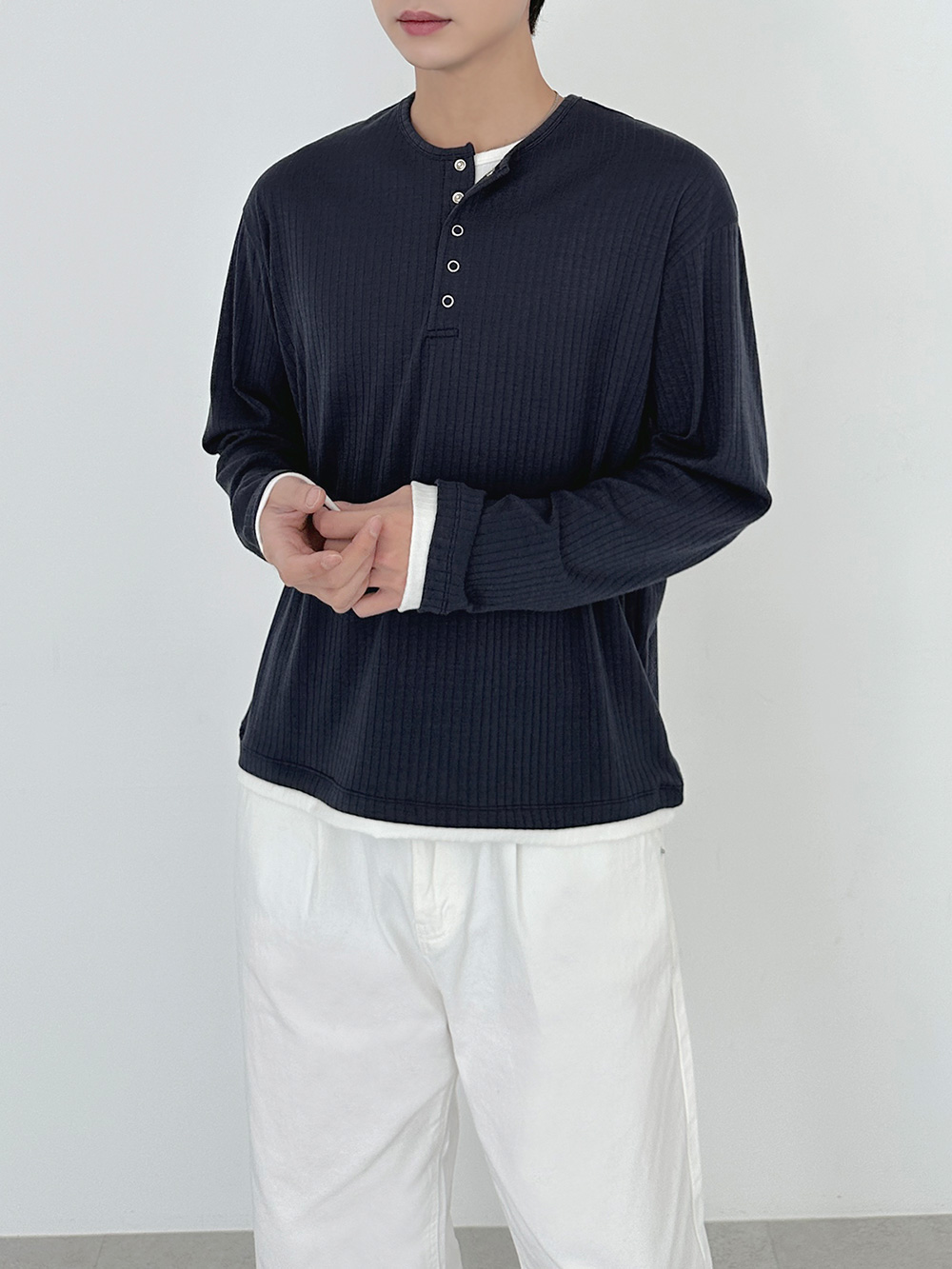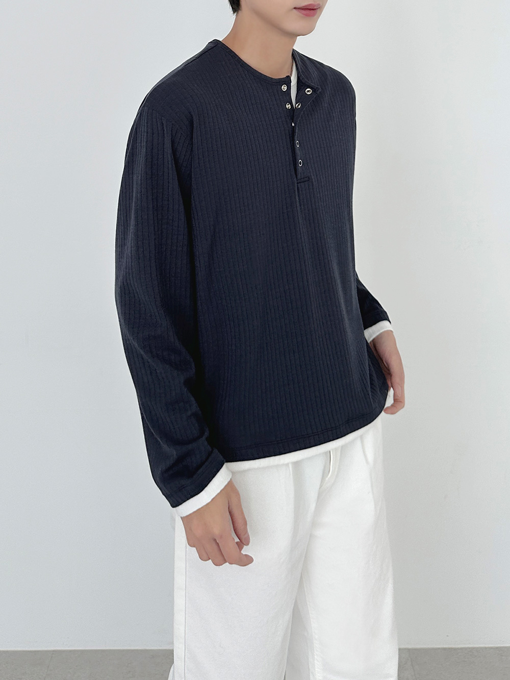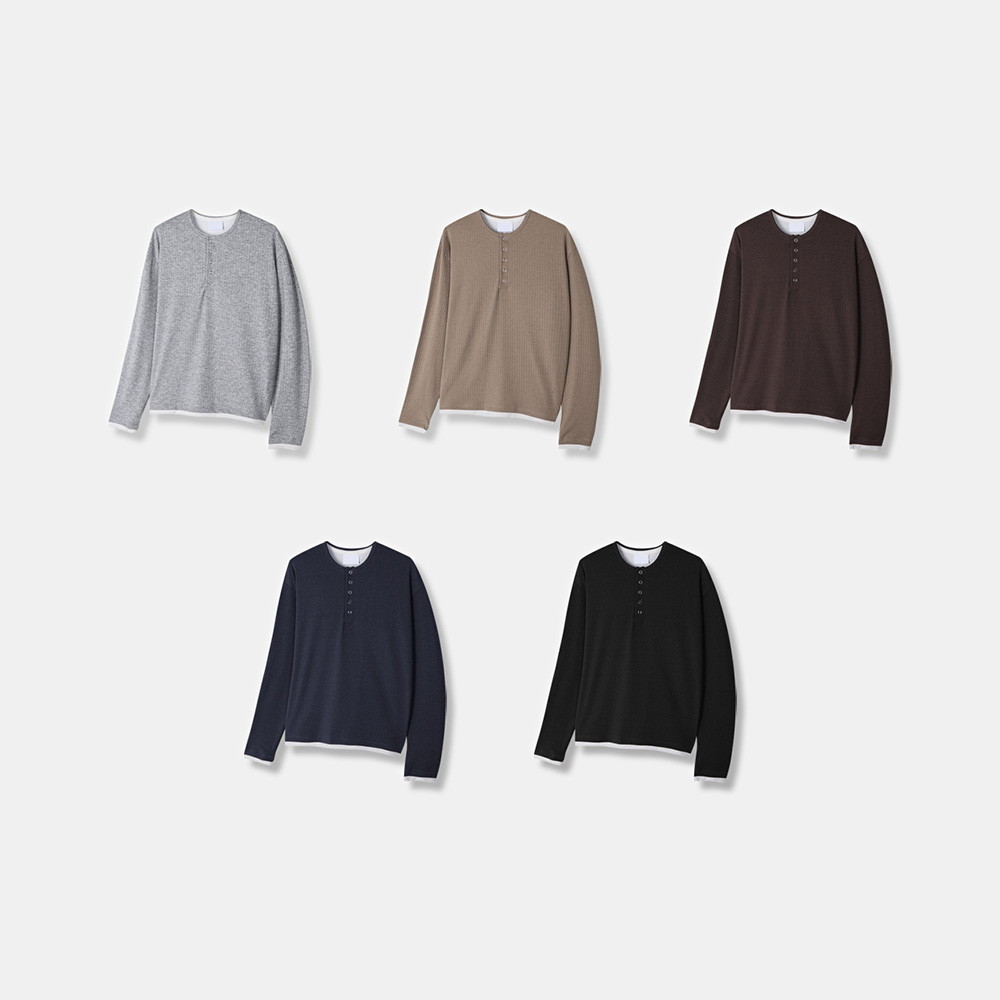 rib sleeve henley neck Long Sleeve 31119