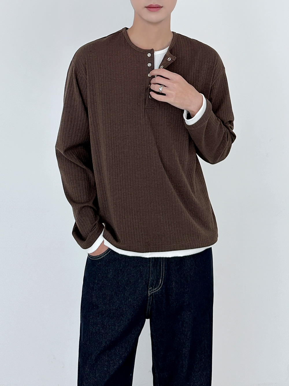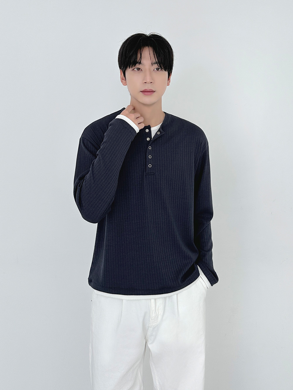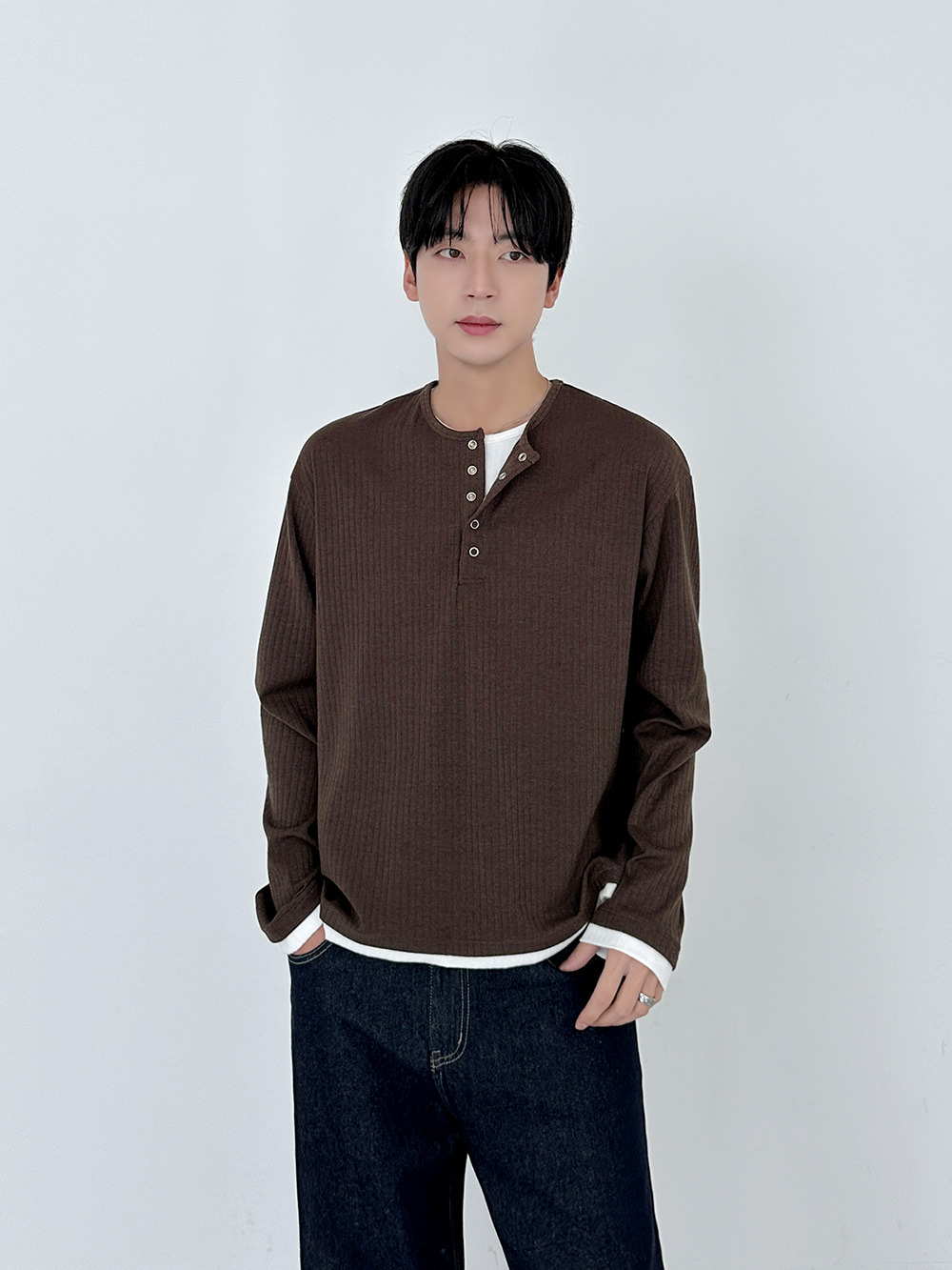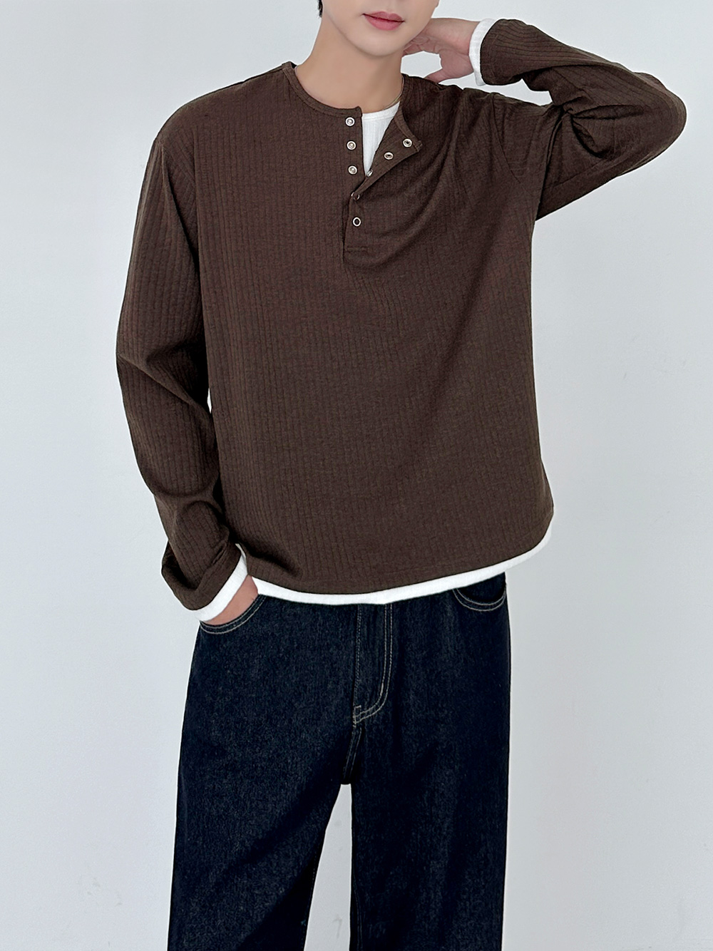 rib sleeve henley neck Long Sleeve 31119