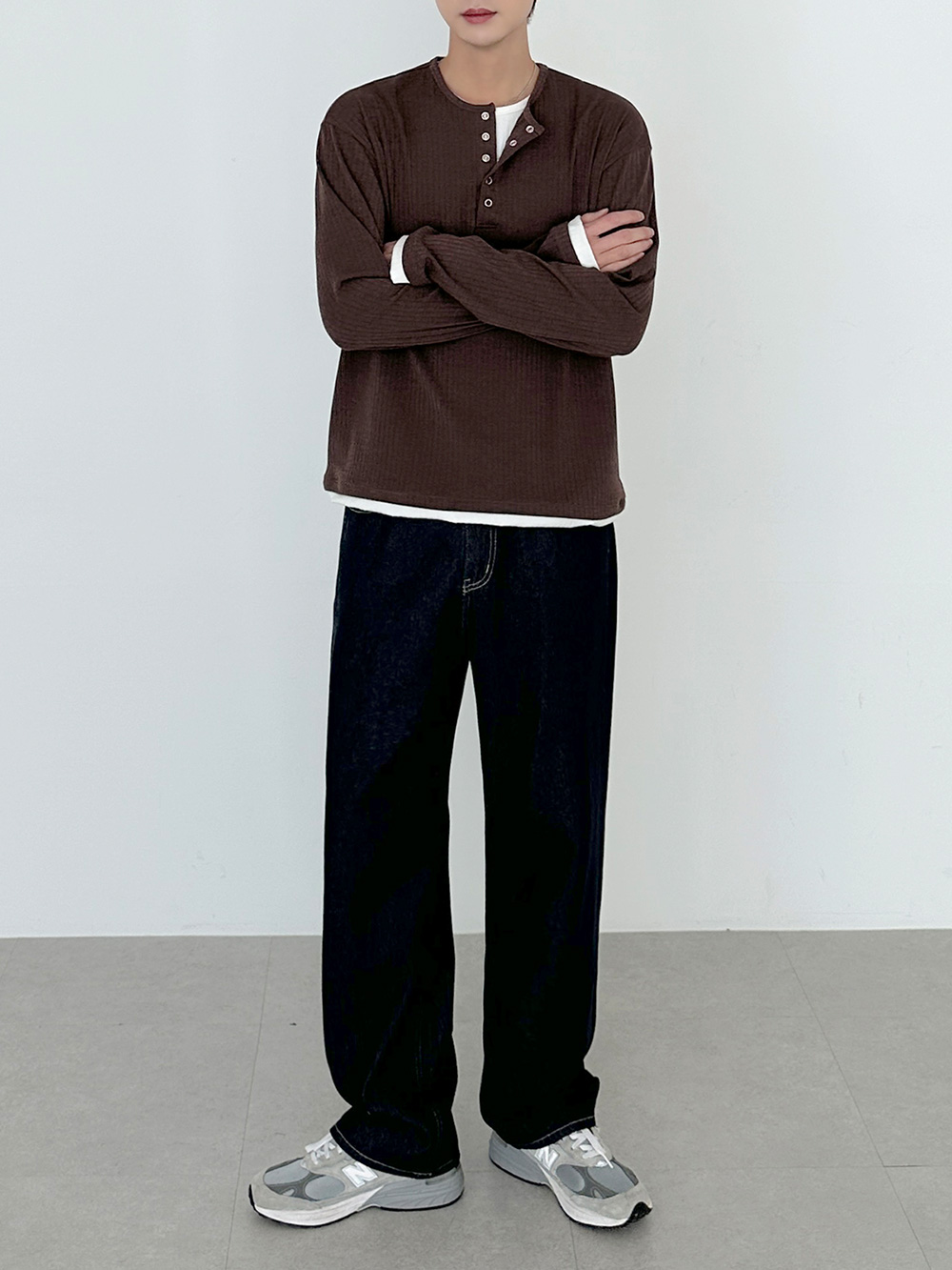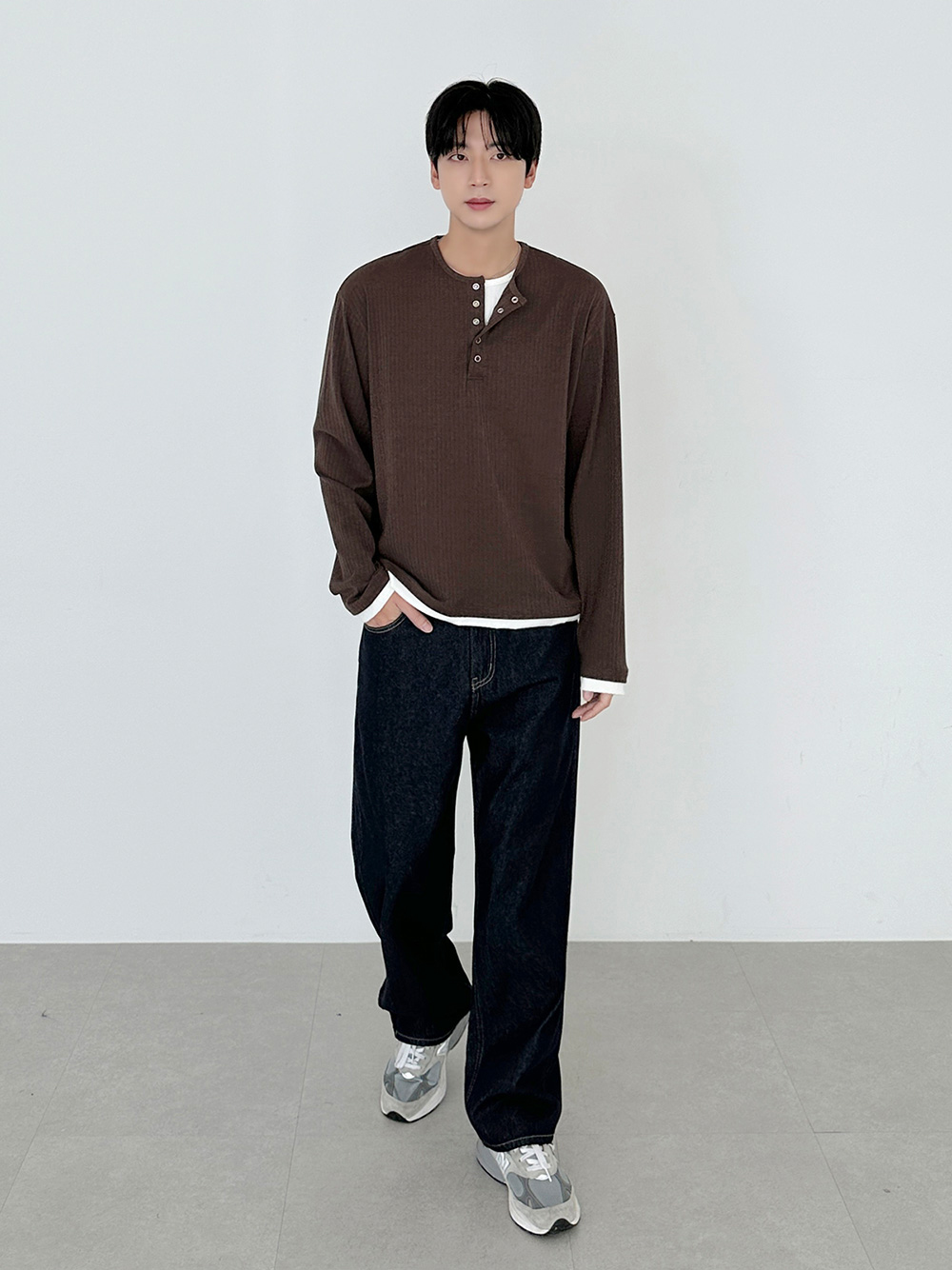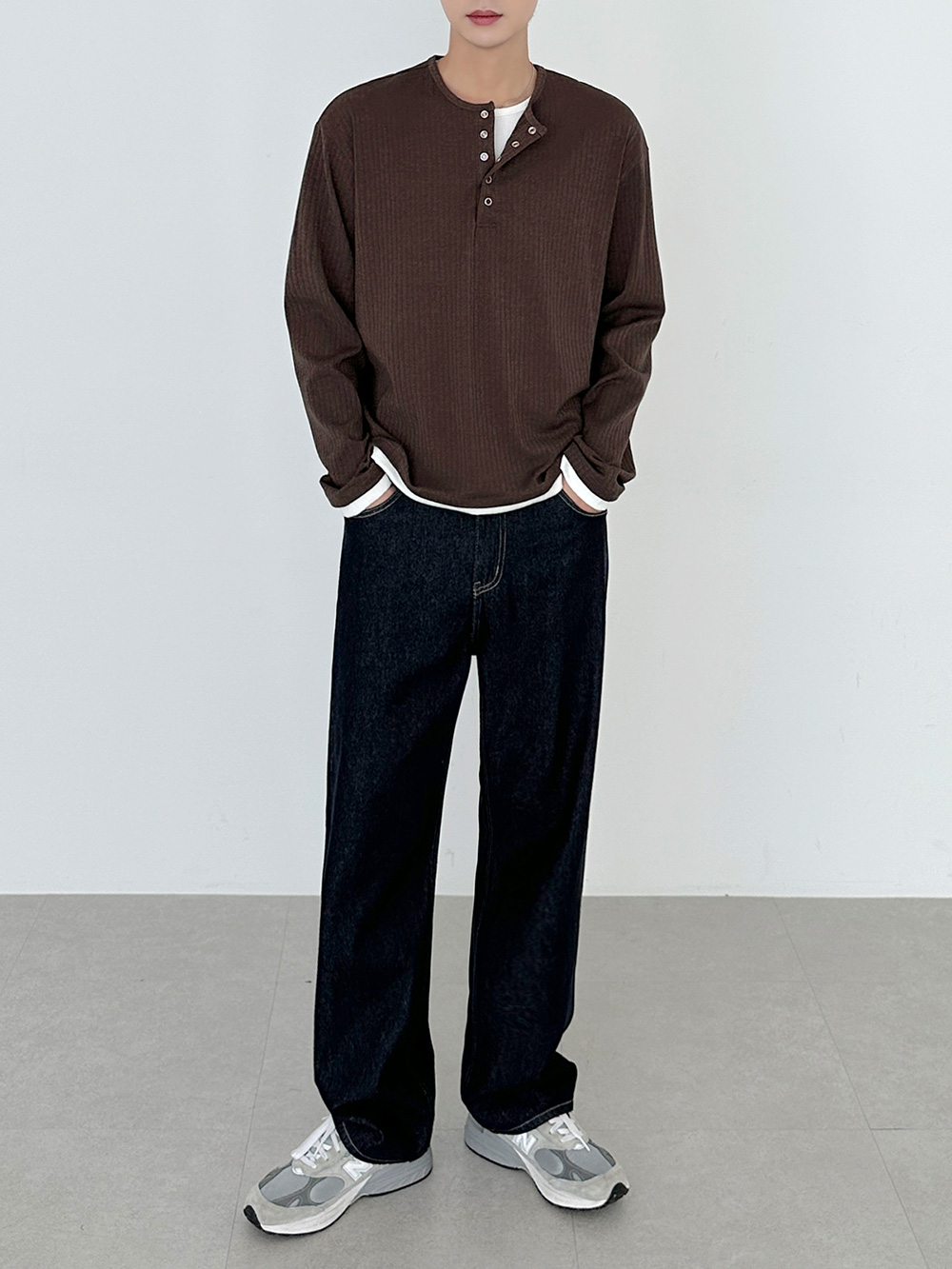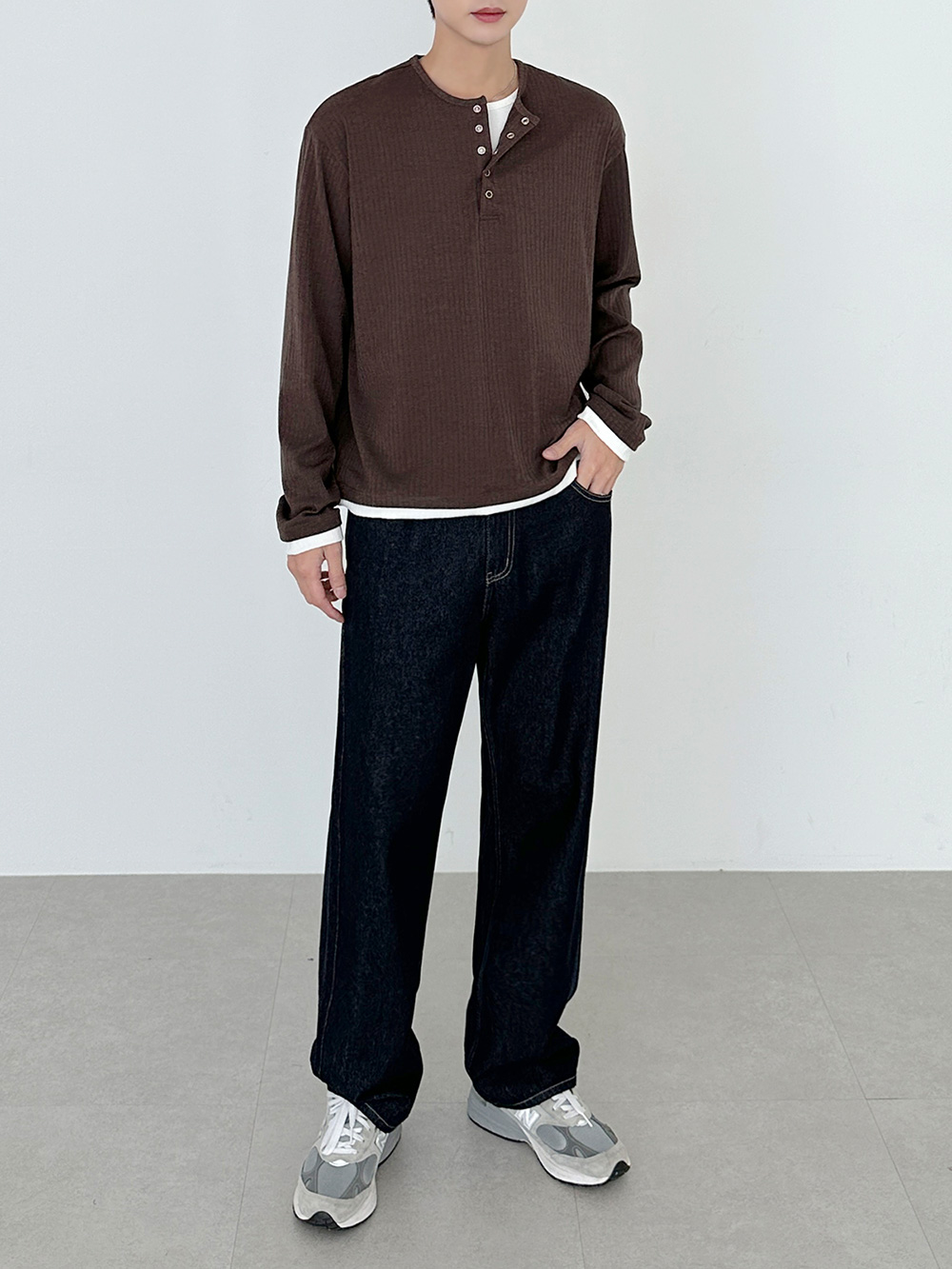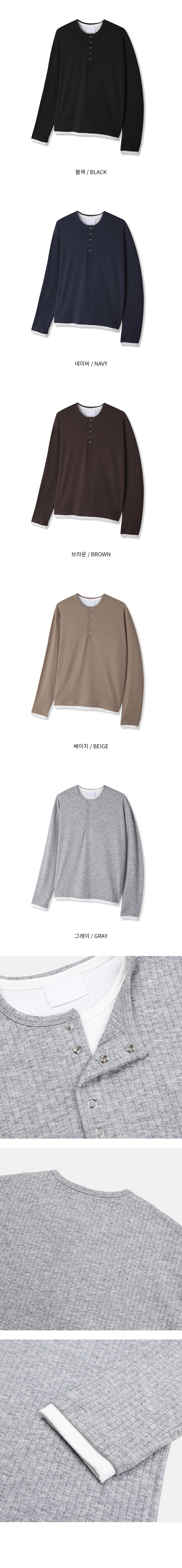 rib sleeve henley neck Long Sleeve 31119