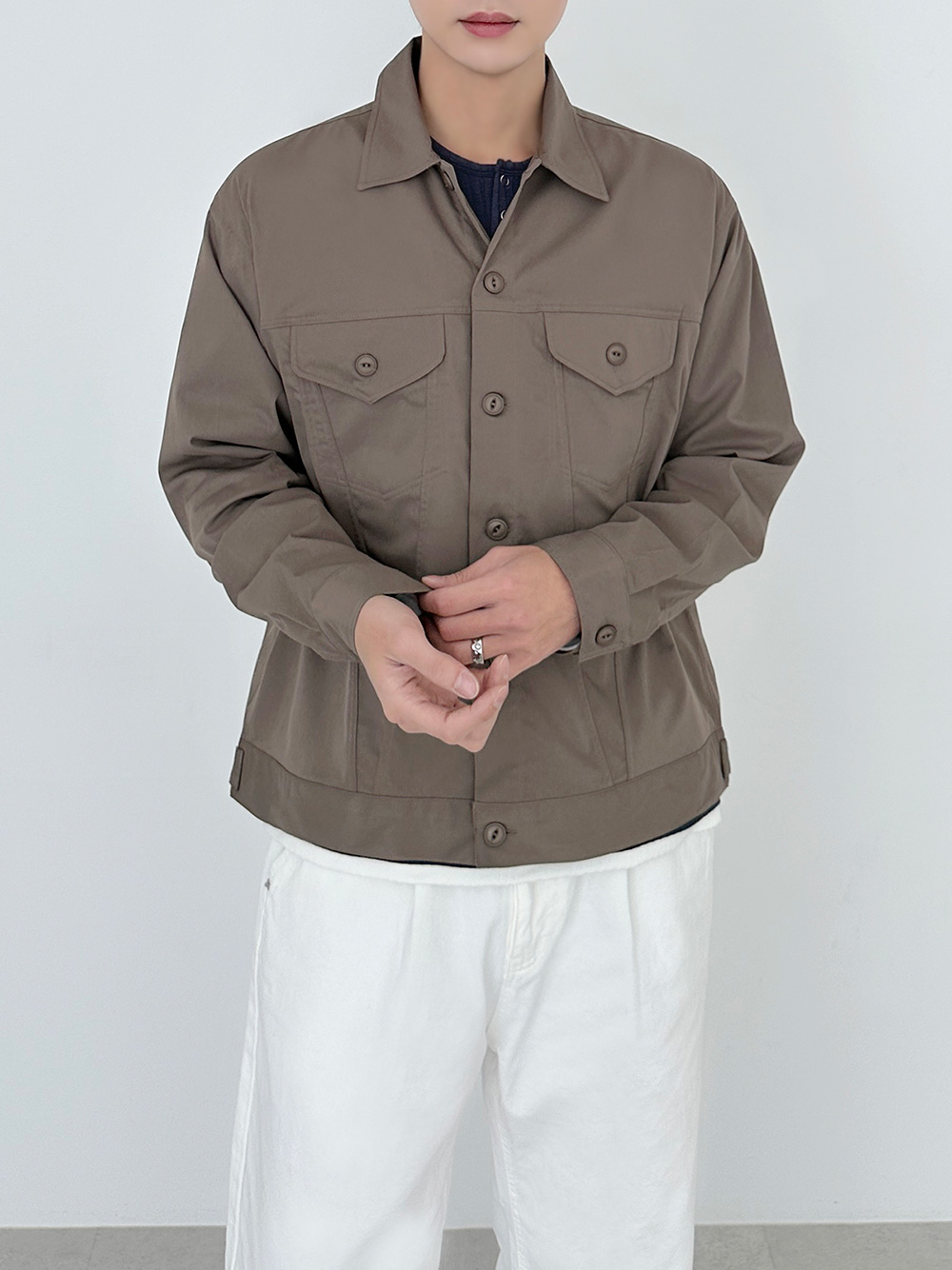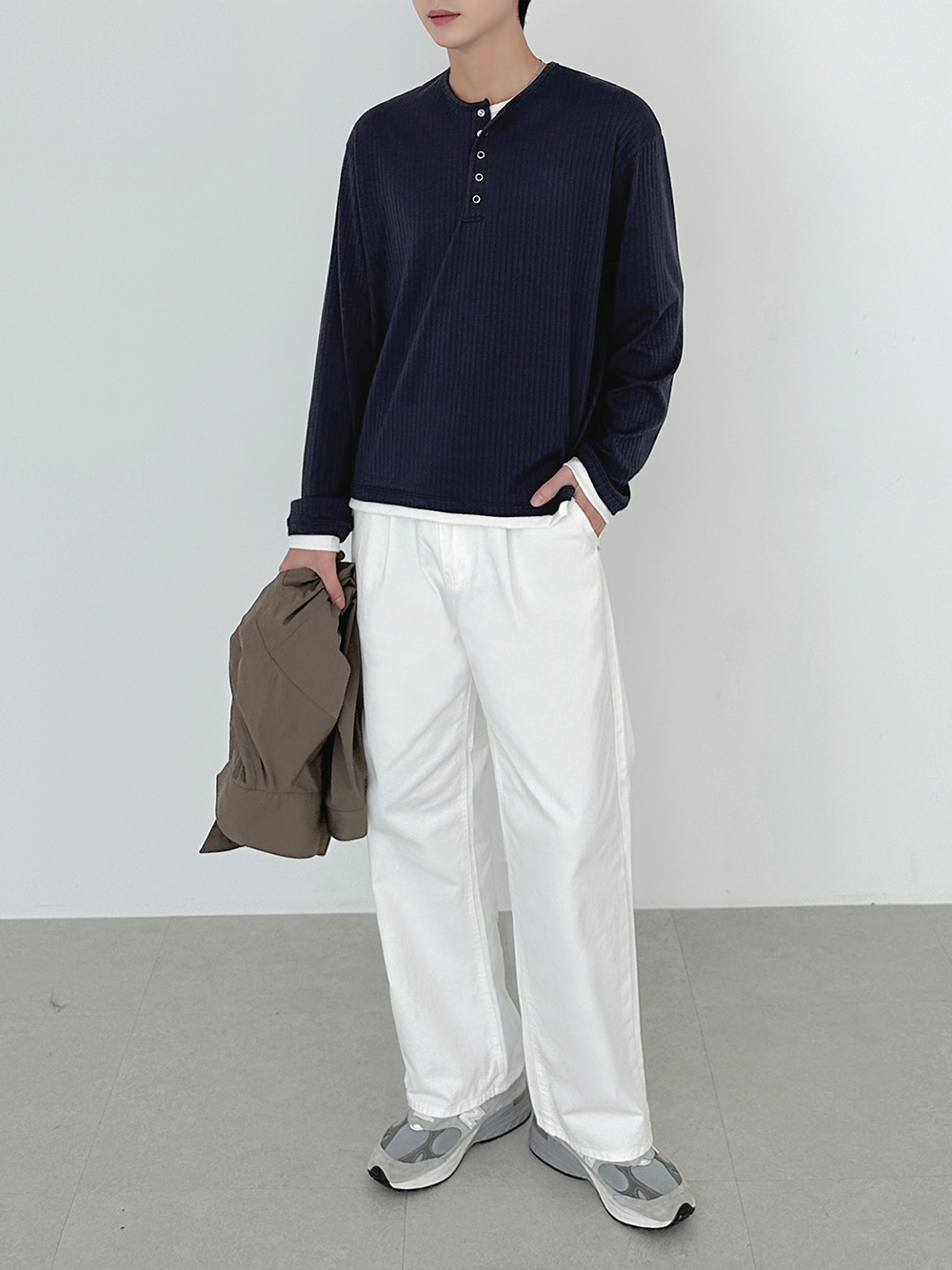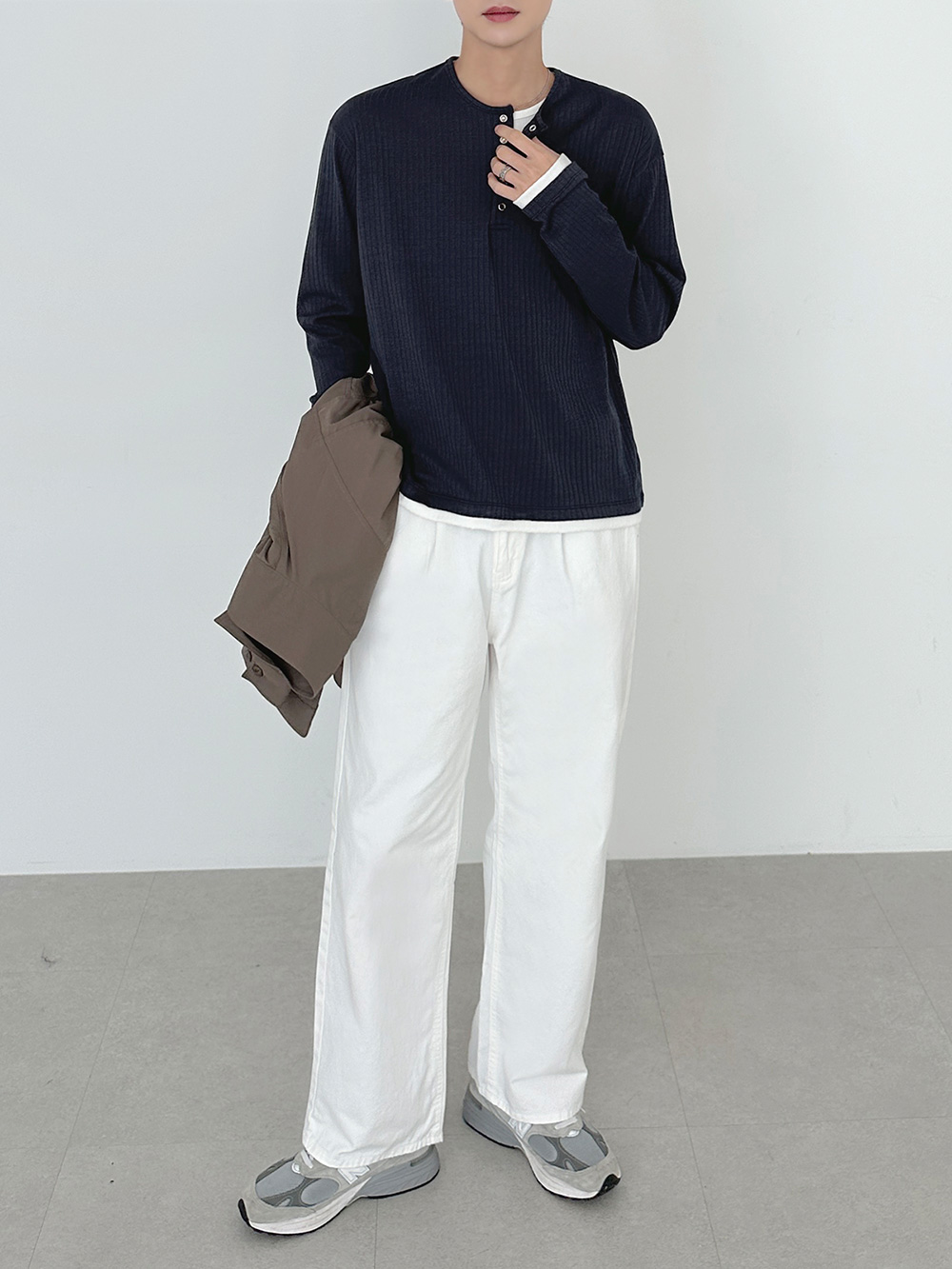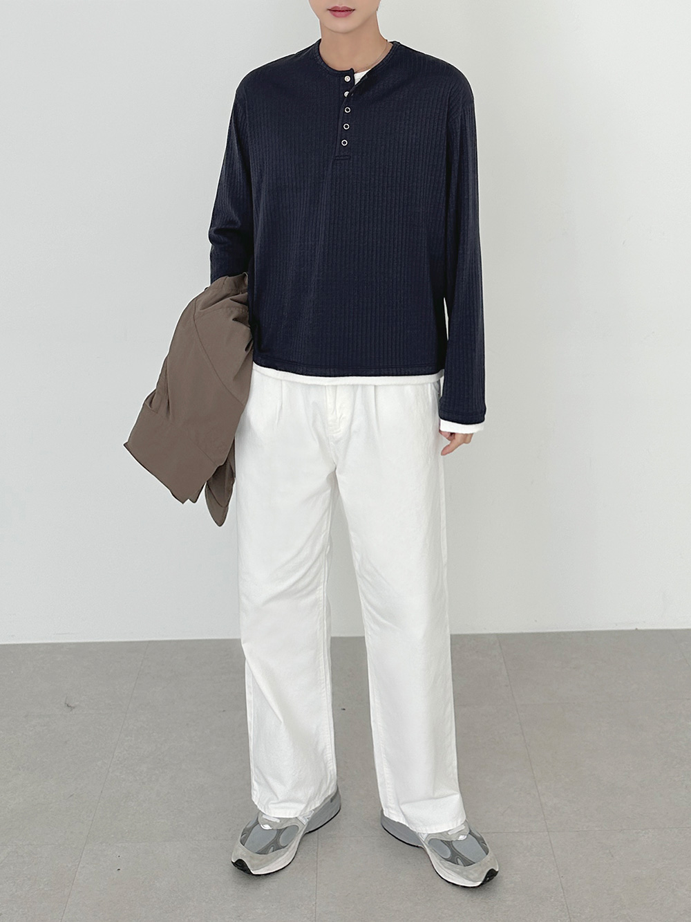 rib sleeve henley neck Long Sleeve 31119